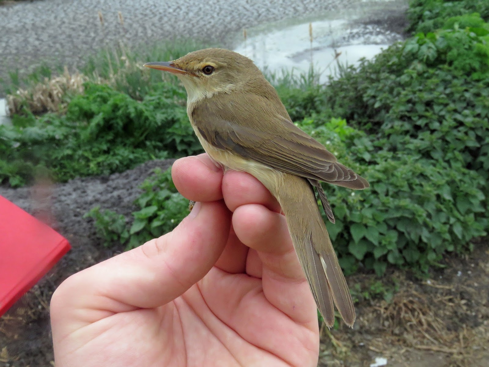 Reed Warblers, seven new and one already bearing a ring (probably from Beddington in a previous year but to be checked). A male
